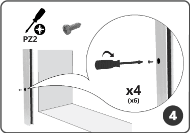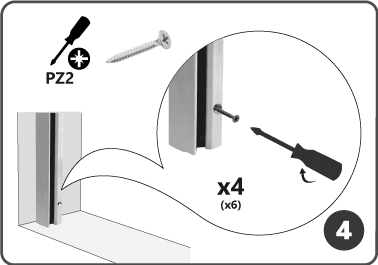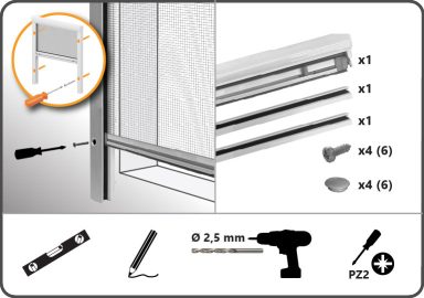 Skru insektnettets sidestyr fast på vinduesrammen med de medfølgende PZ2 skruer.