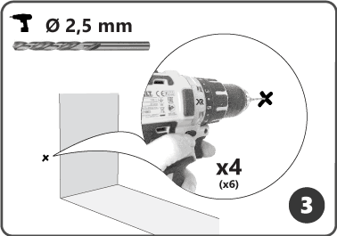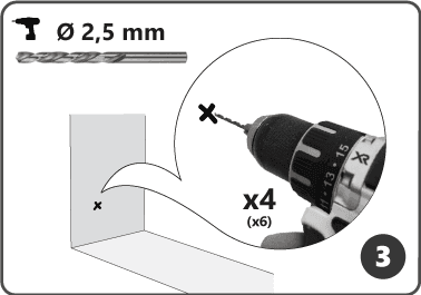 Bor huller i de markerede skruesteder med et 2,5 mm bor (hvis nødvendigt).